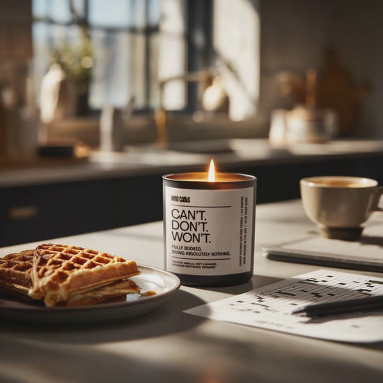Can’t. Don’t. Won’t. is the candle for your inner quitter, the proud kind. Some days the hustle can wait. The to-do list can rot. And the only vibe worth chasing is unapologetic ease. This scent wraps you up in cozy comfort, giving you full permission to skip, bail, and ghost without guilt. Light it, lounge hard, and let everyone else deal with their own chaos. Period.